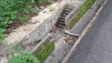 県道2号線をさらに進むと、あ!路上にヤンバルクイナが・・と思ってブレーキを踏んだらカラスでした。名護以北ではカラスをよく見かけます。那覇ではあまり見たことがありません。ヤンバルのカラスは、道路をピョンピョン跳ねて渡るので大変紛らわしいです。ヤンバルのキジバトもよく道路を歩いて横断していました。 側溝には、小さな動物のための階段が付いています。スロープ付き側溝というようですが、広島駅前を流れる京橋川に作られた、土木学会選奨土木遺産指定の雁木 (がんぎ:河岸から川に降りる階段)によく似ています。 |